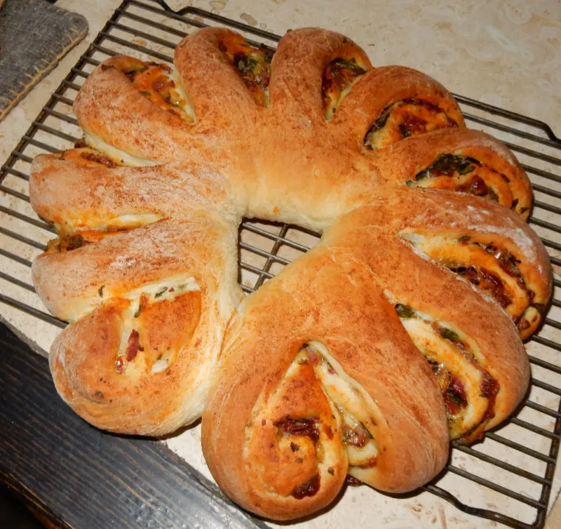 This recipe makes two tea rings, with roughly 12 slices in each. We did experiment with substituting turkey, ham, chicken and beef but the pastrami gave us the best flavour. We discovered that changing cheeses, adding fruit or cinnamon bun filling was not only fun but also very tasty. Many of the variations were served at our Special Tea Luncheons. We often take these to dinner parties and eat the cinnamon version for breakfast on Christmas morning.